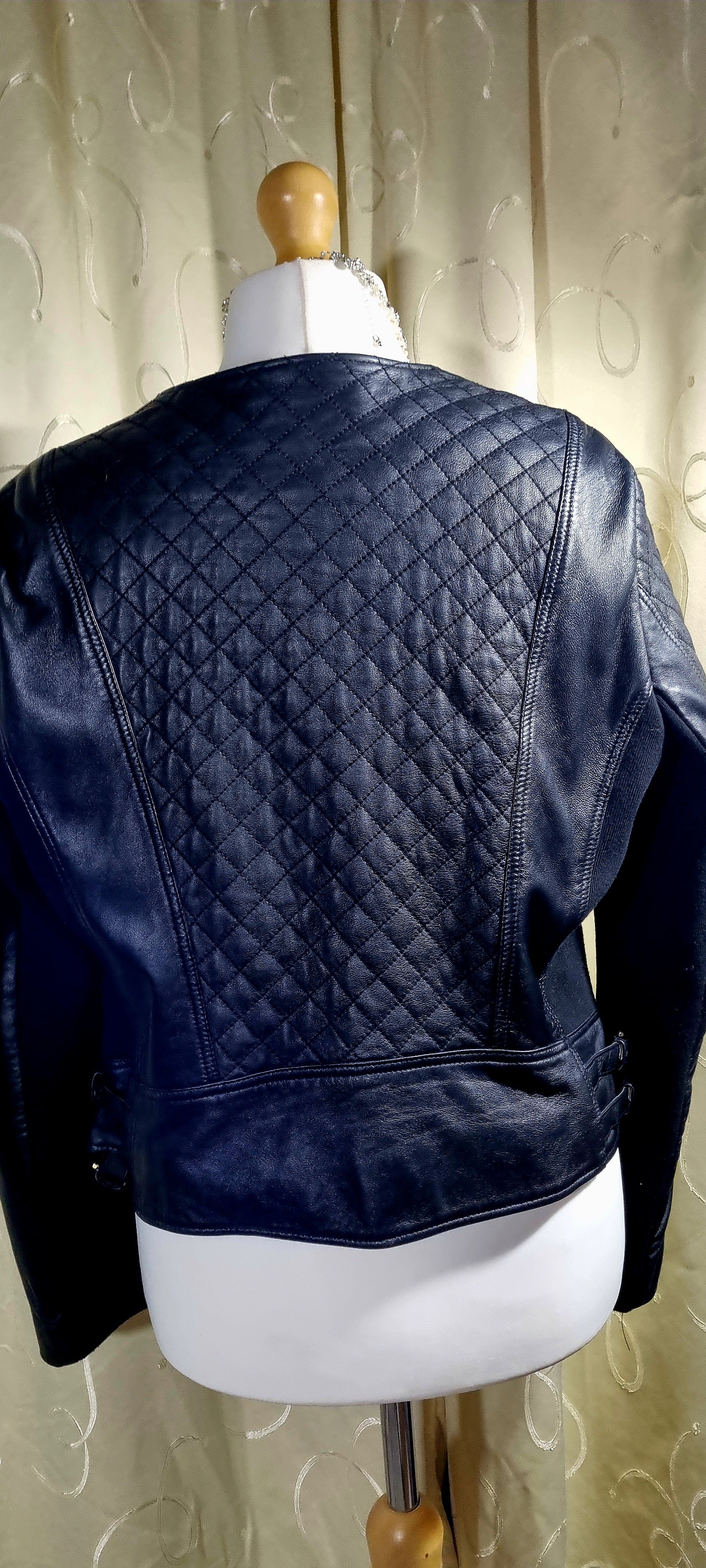 Karen Millen Black Quilted Real Leather Biker Jacket – Size 20 – Excellent Pre-Worn Condition