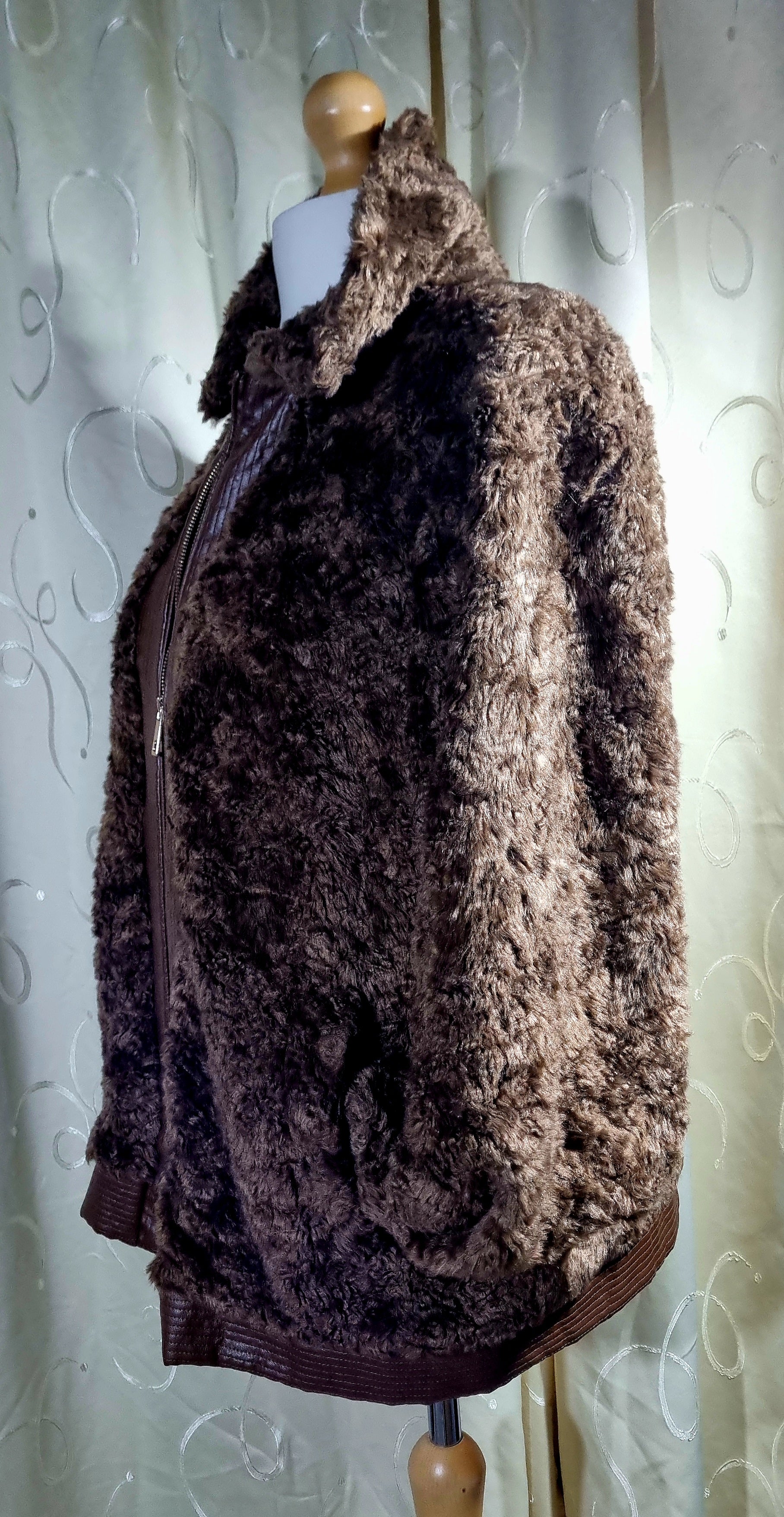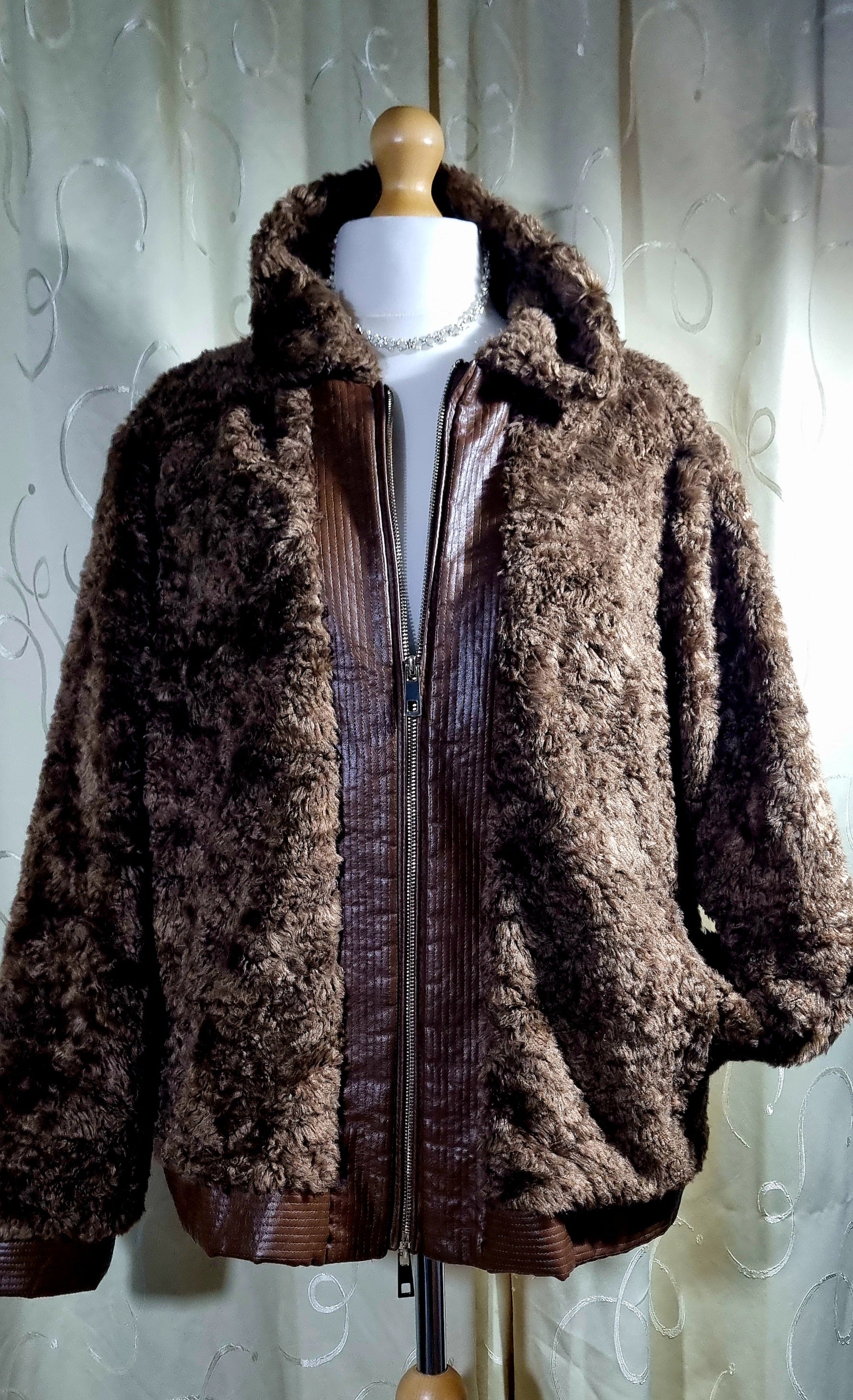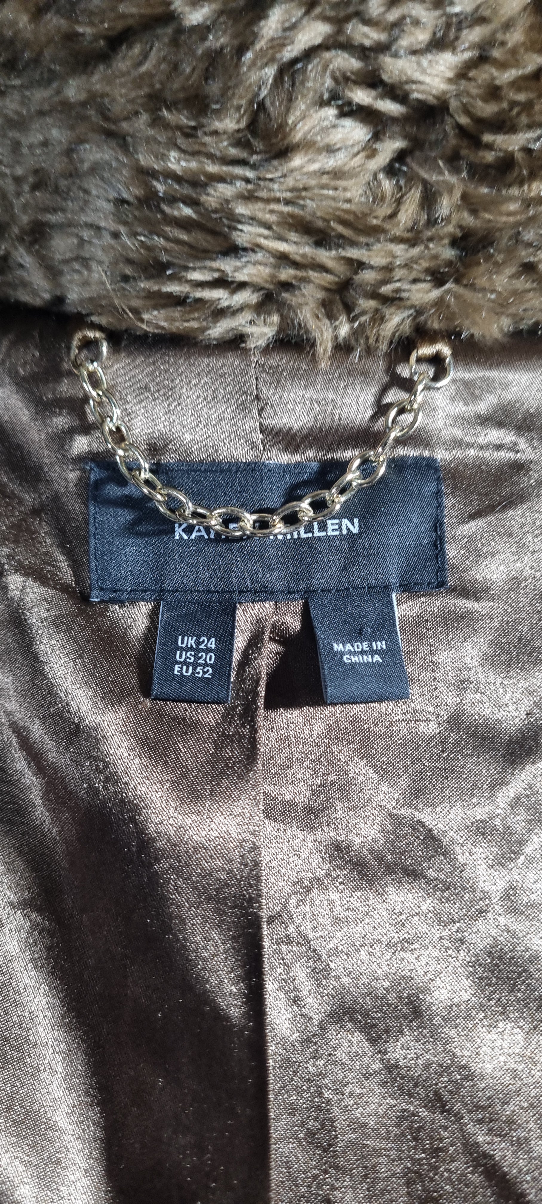 Karen Millen Brown Faux Fur & Leather-Effect Bomber Jacket – Size 24 – Excellent Condition