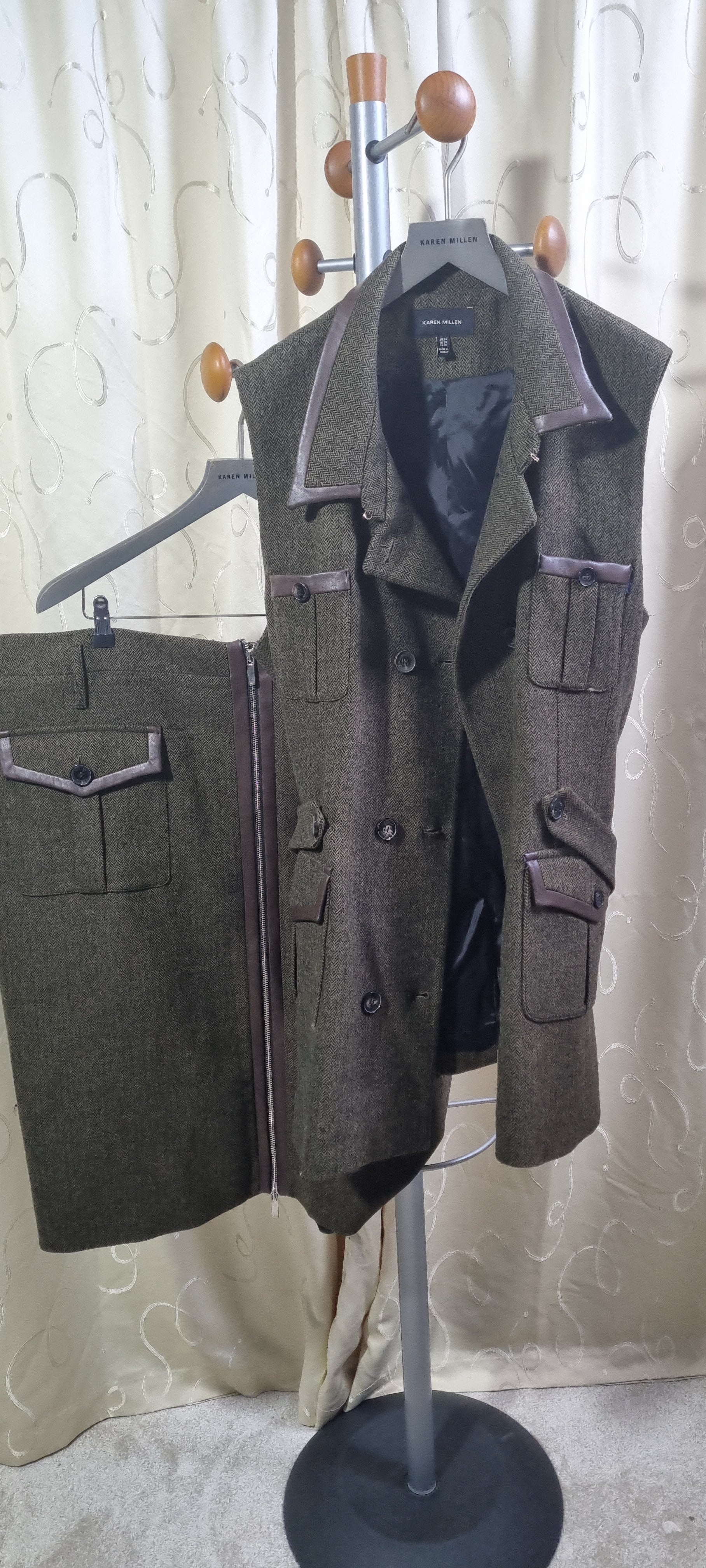 Karen Millen tweed waistcoat and matching skirt set.